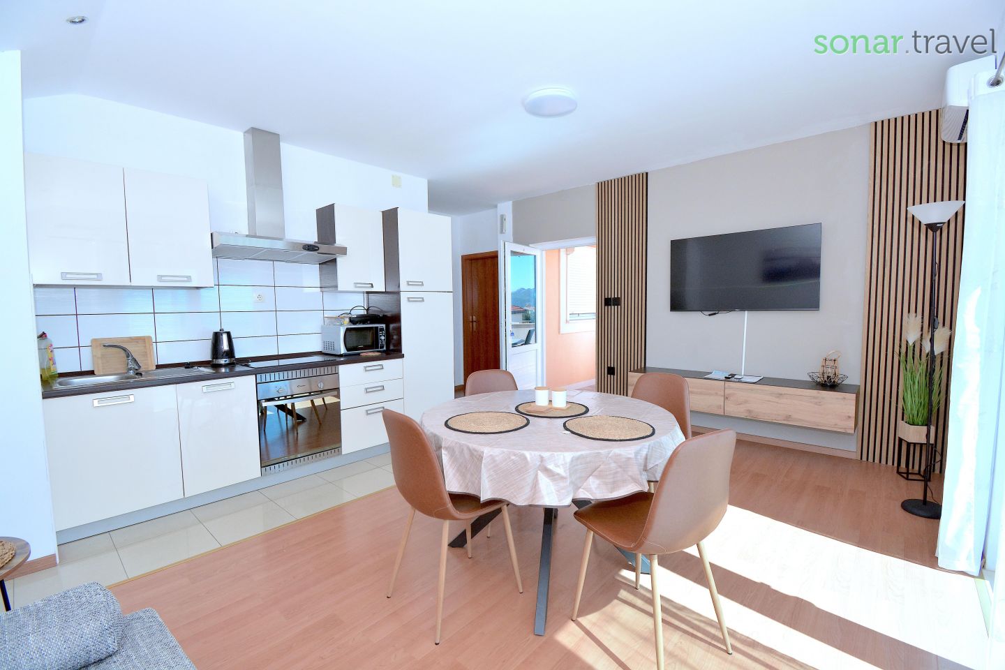 Apartament duży, czysty, dobrze wyposażony, wygodny, duży taras. Jedynym minusem jest dodatkowo płatna klimatyzacja. Apartament zadbany. Bliska odległość plaży, sklepów. Okolica cicha, brak ruchliwej ulicy (+). Warto tu przyjechać. Bardzo mi się podobało, miejscowość cicha niezbyt duża, plaże niezatłoczone, w sam raz na wypoczynek. W pobliżu wiele miejsc które warto zobaczyć.